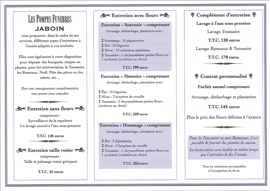 L’entretien et la rénovation de sépulture